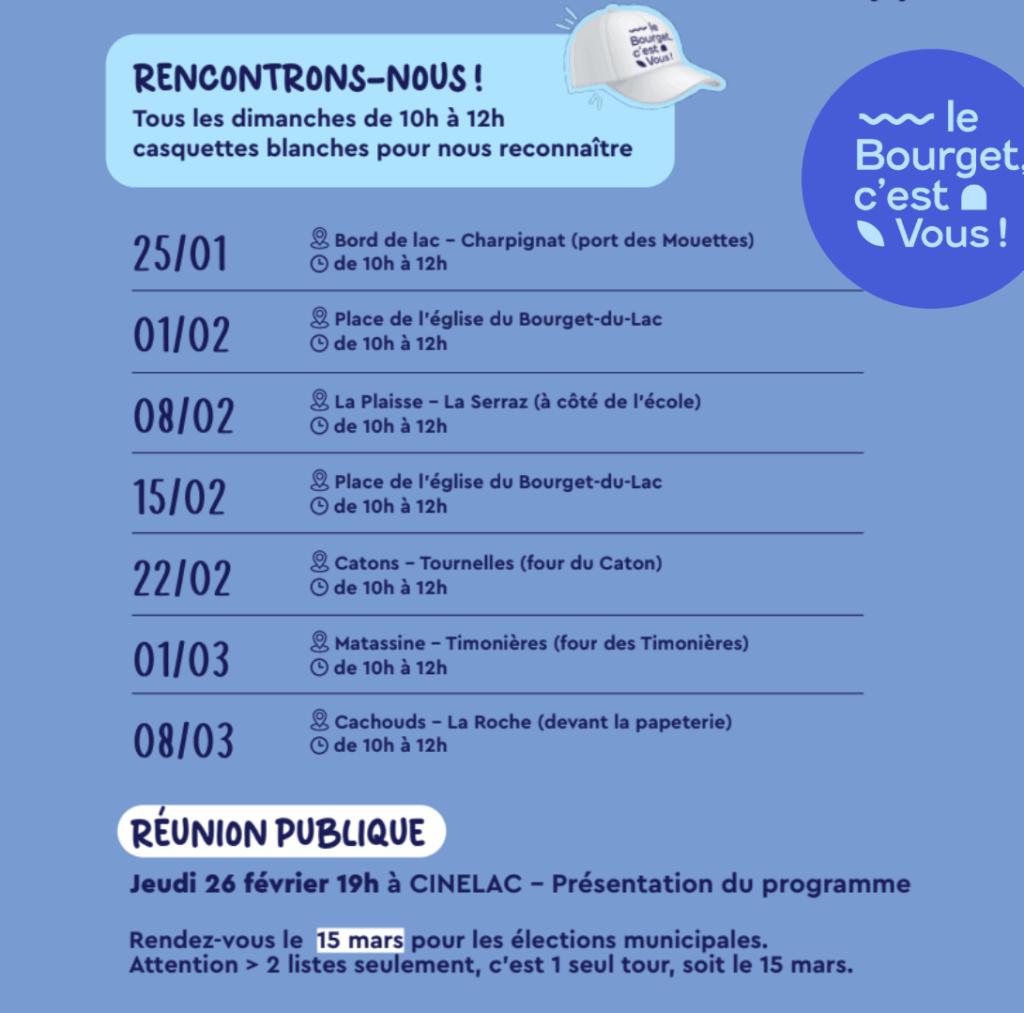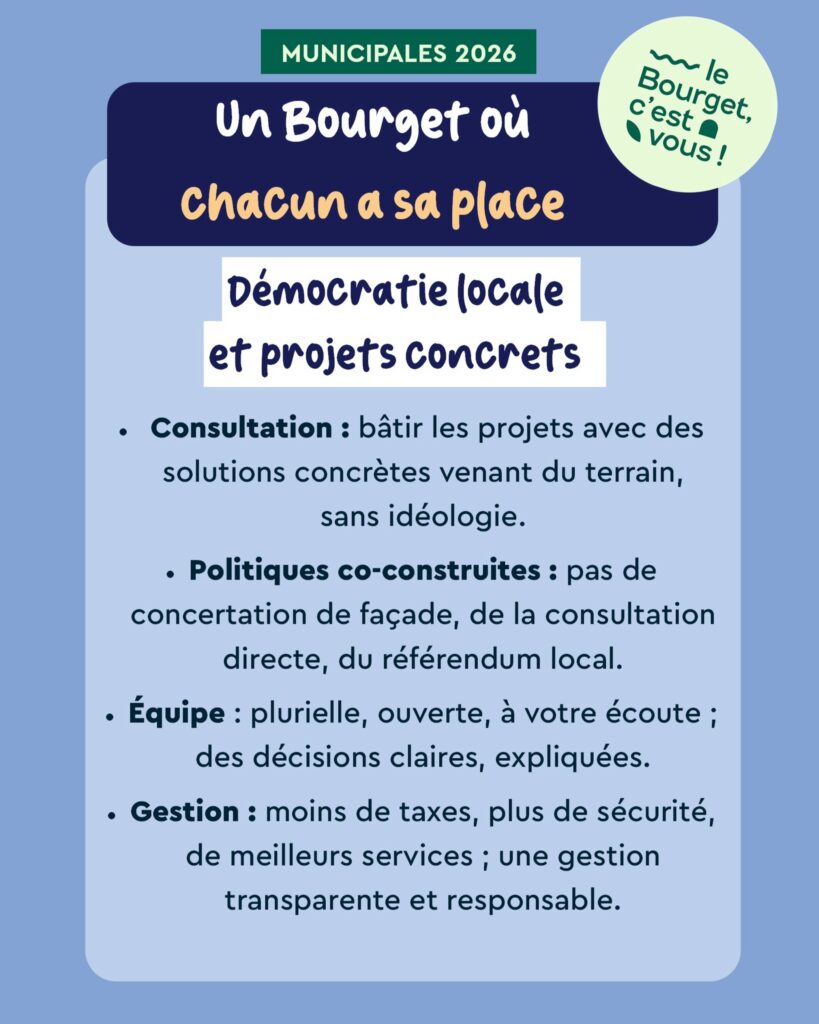 Lors des élections municipales du 15 mars 2026, choisissons un Bourget-du-Lac fidèle à son âme village, solidaire et tourné vers l’avenir.