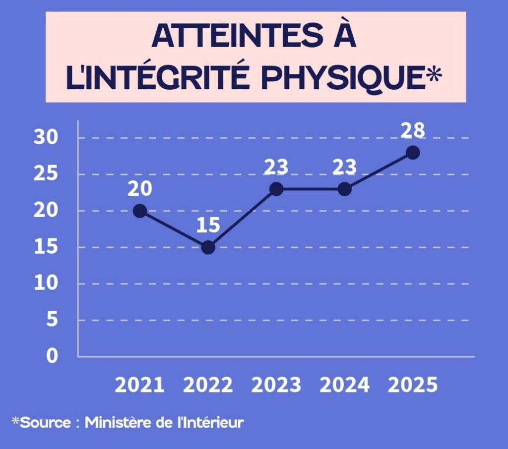 les atteintes à l’intégrité physique ont augmenté de 40 %